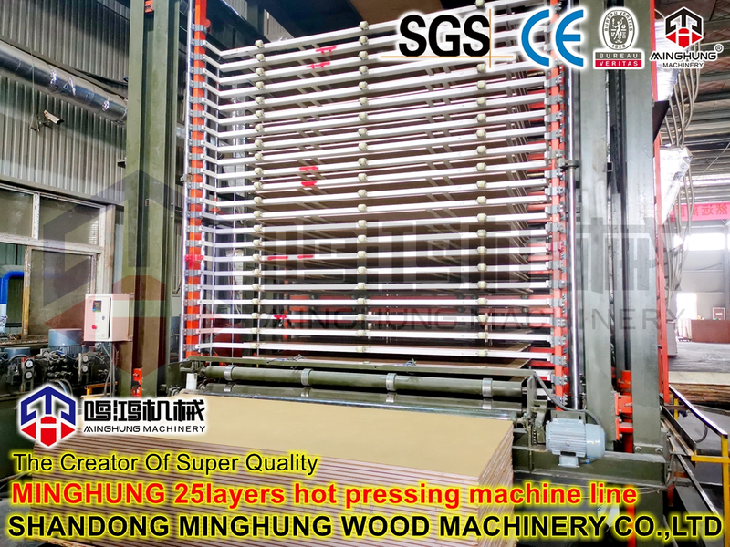 Peralatan paling kritis di jalur produksi. Ini menerapkan suhu tinggi dan tekanan tinggi ke matras, menyembuhkan perekat dengan cepat dan mengikat beberapa lapisan veneer dengan kuat bersama -sama untuk membentuk kayu lapis. Untuk garis lebar 1830mm, ukuran hot platen biasanya lebih besar dari 1830mm x 915mm (misalnya, 2500mm x 1300mm atau lebih).