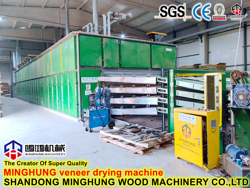Apa itu pengering veneer?MINGHUNG Pengering veneer rol untuk mengeringkan veneer kayu asli, menghilangkan kelembapan yang melimpah, pada akhirnya kelembapan veneer kayu akan menjadi 5%-10%, sehingga cocok untuk membuat kayu lapis. Pengering rol veneer cocok untuk kapasitas pengeringan besar per hari, bisa berbeda panjang, lebar