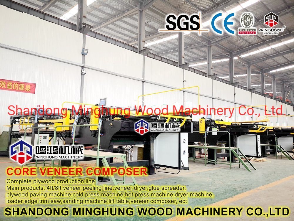 Fungsi mesin komposer Inti Otomatis adalah menyatukan veneer kayu ukuran berbeda menjadi ukuran kayu lapis, melalui benang berkekuatan tinggi dan perekat lelehan panas.