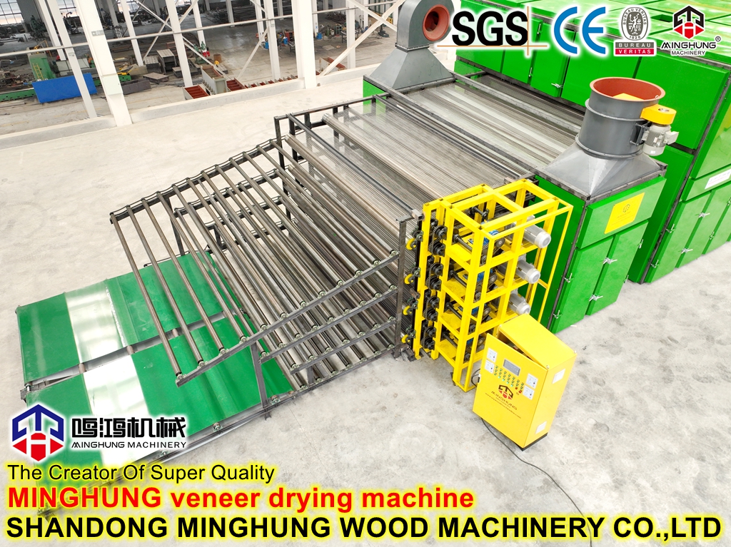 Apa itu pengering veneer?MINGHUNG Pengering veneer rol untuk mengeringkan veneer kayu asli, menghilangkan kelembapan yang melimpah, pada akhirnya kelembapan veneer kayu akan menjadi 5%-10%, sehingga cocok untuk membuat kayu lapis. Pengering rol veneer cocok untuk kapasitas pengeringan besar per hari, bisa berbeda panjang, lebar